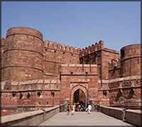 Visit the magnificent Agra Fort, located on the banks of the Yamuna River. Built by Emperor Akbar in 1565 AD, this massive red sandstone fort features: