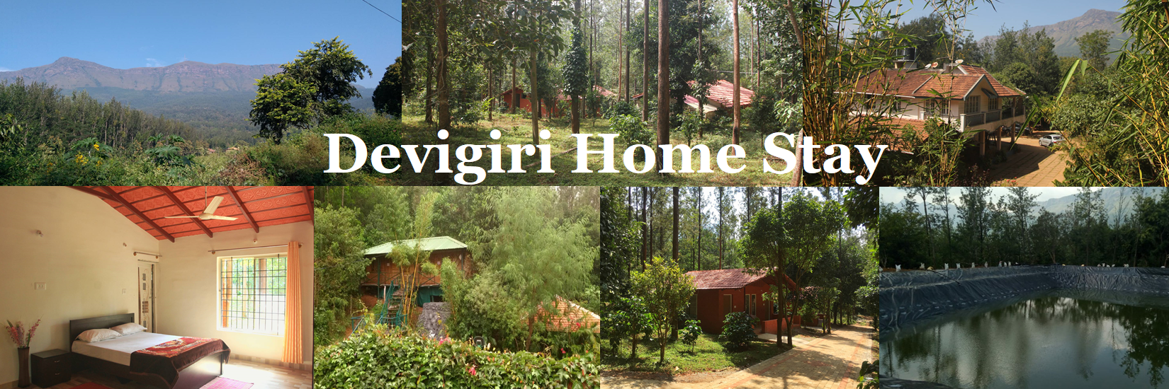 Devigiri nestles in the Baba Budangiri range north of Chikmangalur in Karnataka at around 4500 feet above sea level. A Home Stay retreat where one can discover the true untouched beauty & splendor of the enchanting Western Ghats. Devigiri has in it a plantation bungalow, built in an attractive rustic heritage style. Here, you can let the world drift away as you enjoy the exotic surroundings of spectacular mountain backdrops, lush green coffee plantations, unspoiled wilderness, gushing streams, varieties of birds, truly mesmerizing unique air & water, scents of coffee, wild orchids and flowers. |