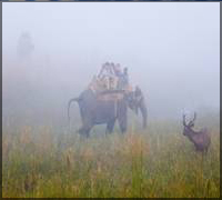 Early morning Elephant Safari through open grasslands and dense forest for wildlife viewing in the Corbett National Park. After breakfast, Jeep Safari to lakeside to see crocodiles. After lunch, day free to relax. Optional spending the day in a watchtower overlooking a water hole. Evening film shows on wildlife. Campfire will be arranged and share your todays experience with other guests Dinner and Overnight stay.
